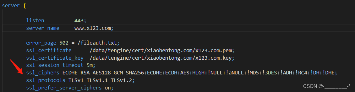 nginx开启的443端口,所以需要去nginx中修改配置文件,禁用3DES算法。