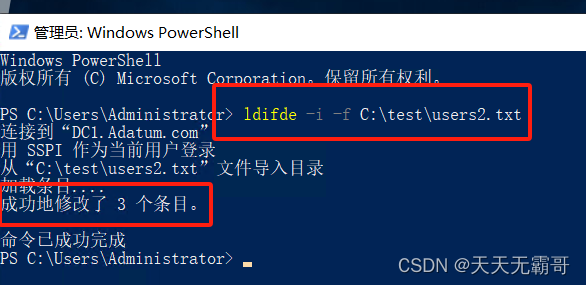 将.txt文改为.ldifde结尾的,同样也是可以执行的。命令类似