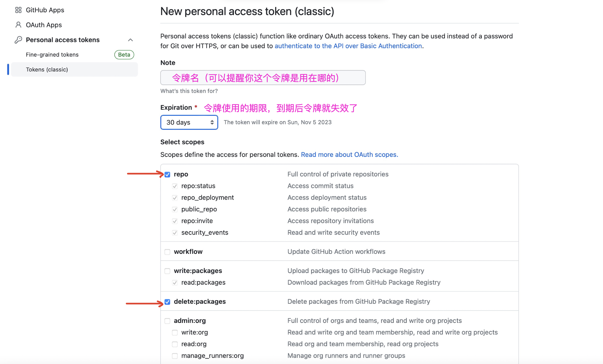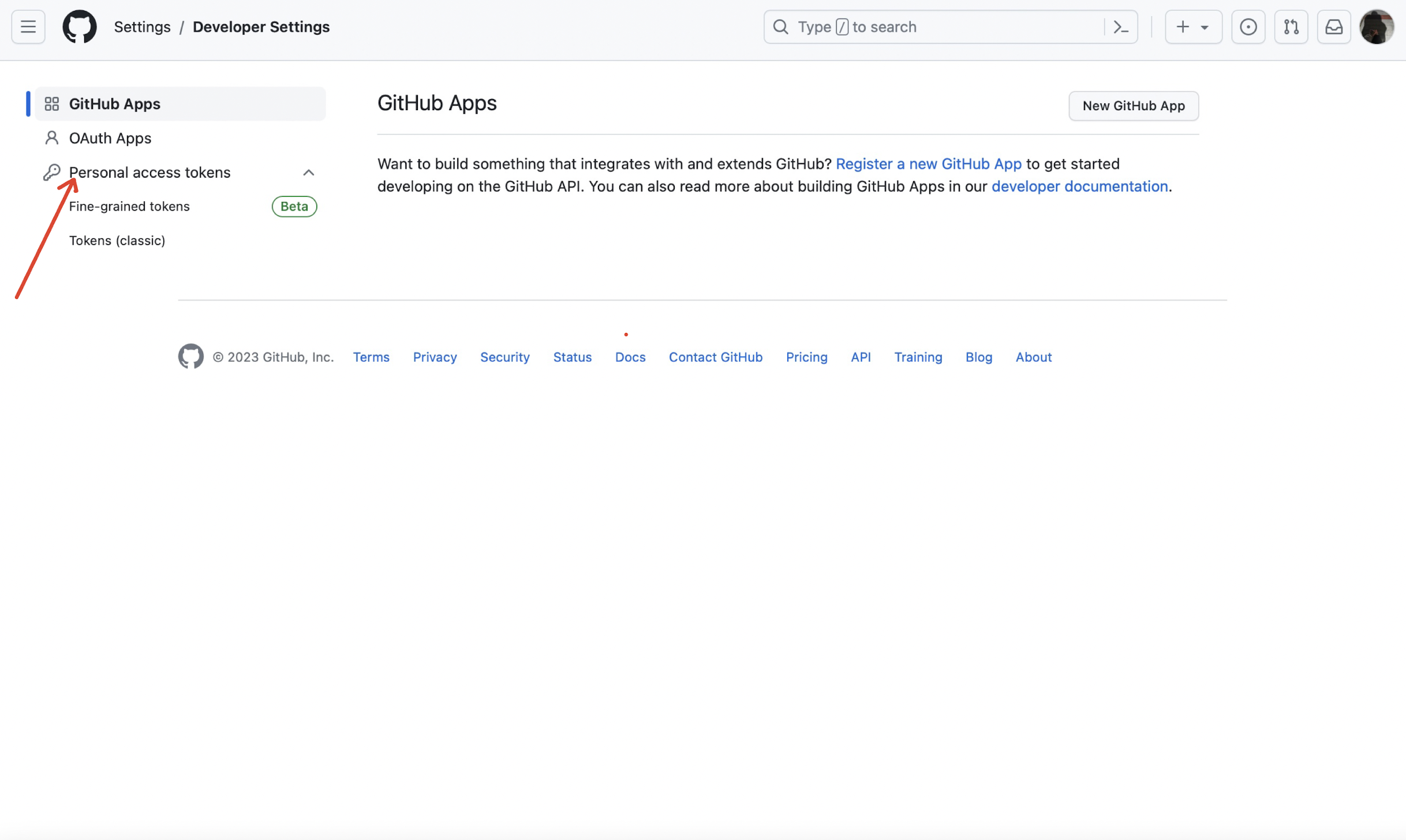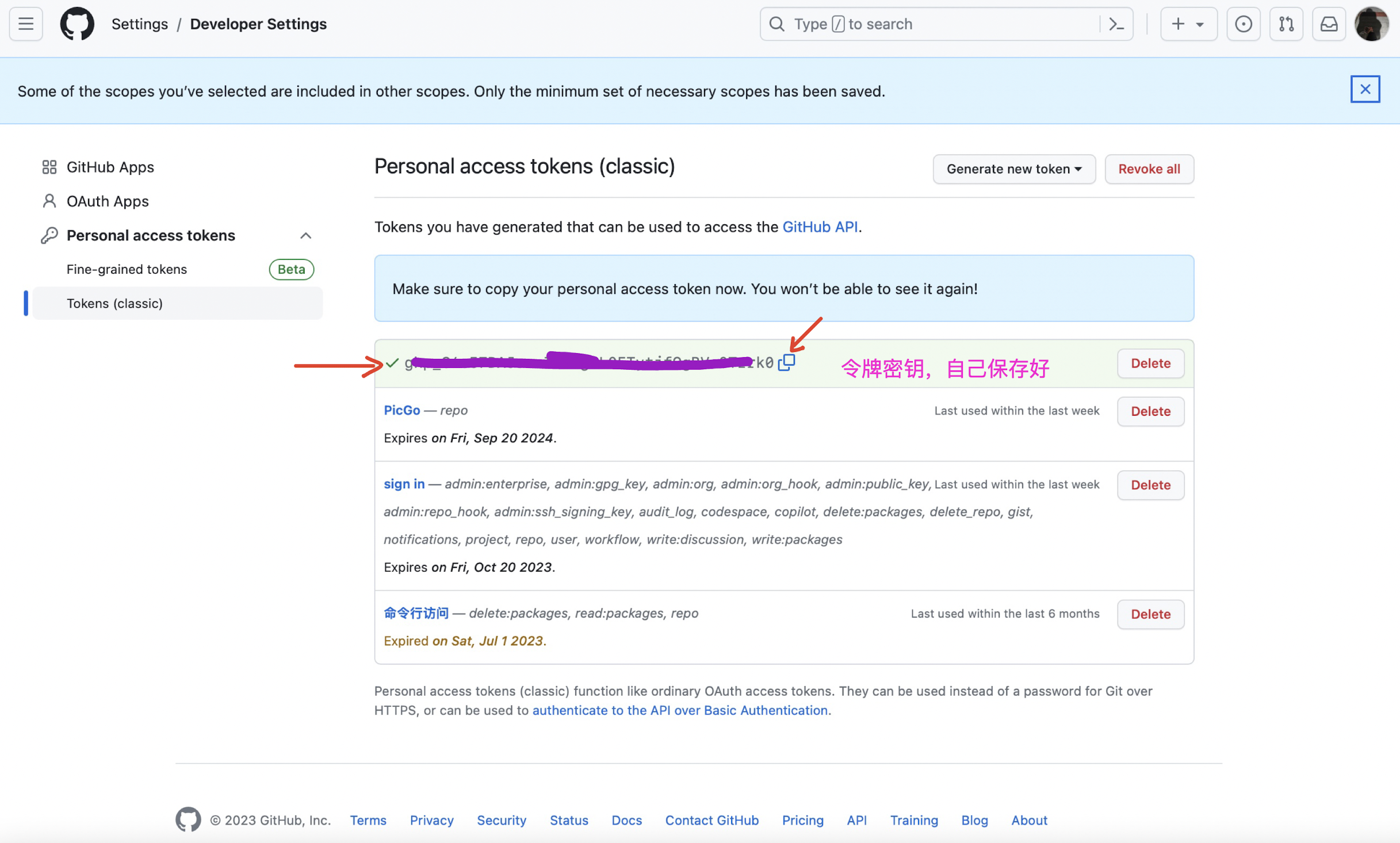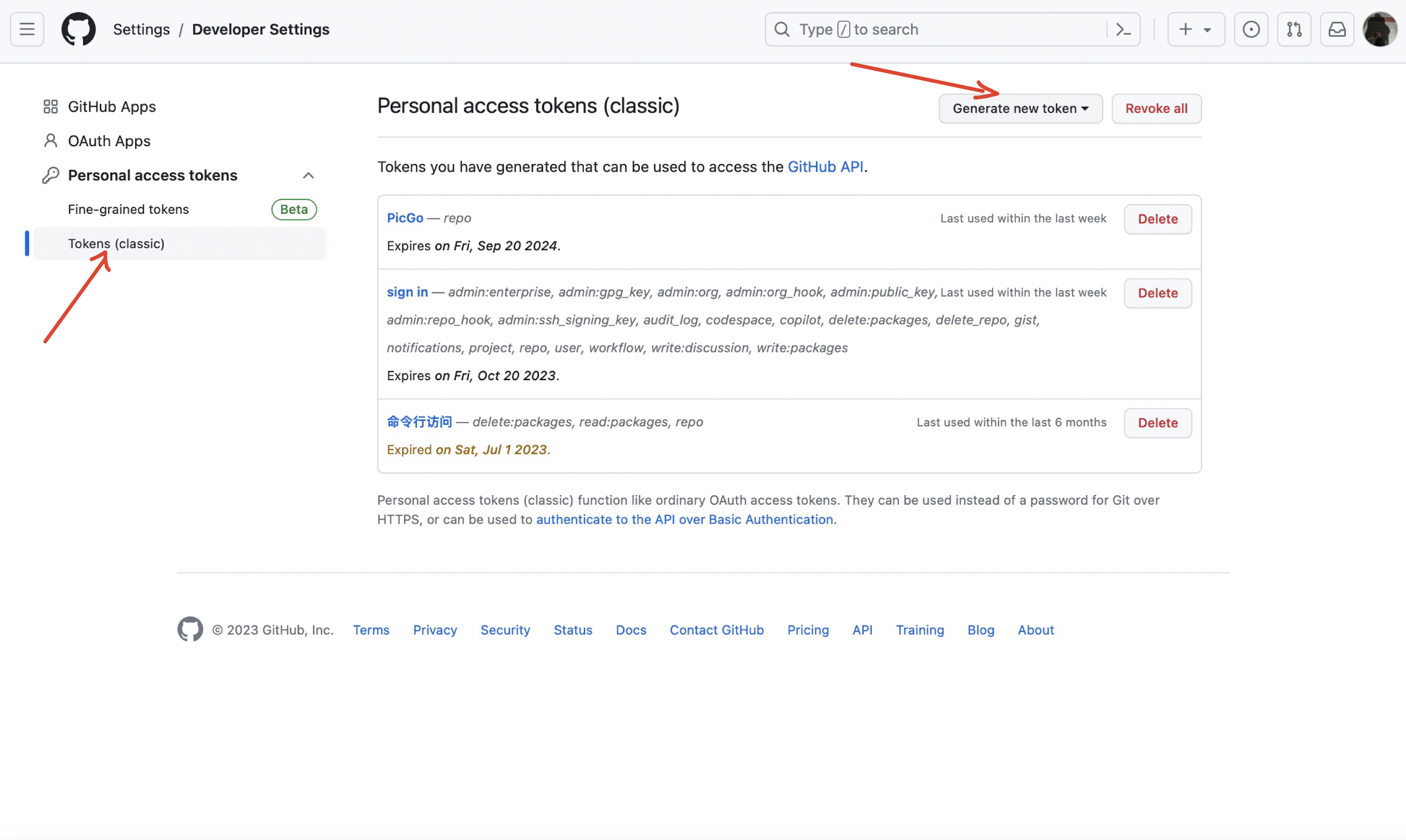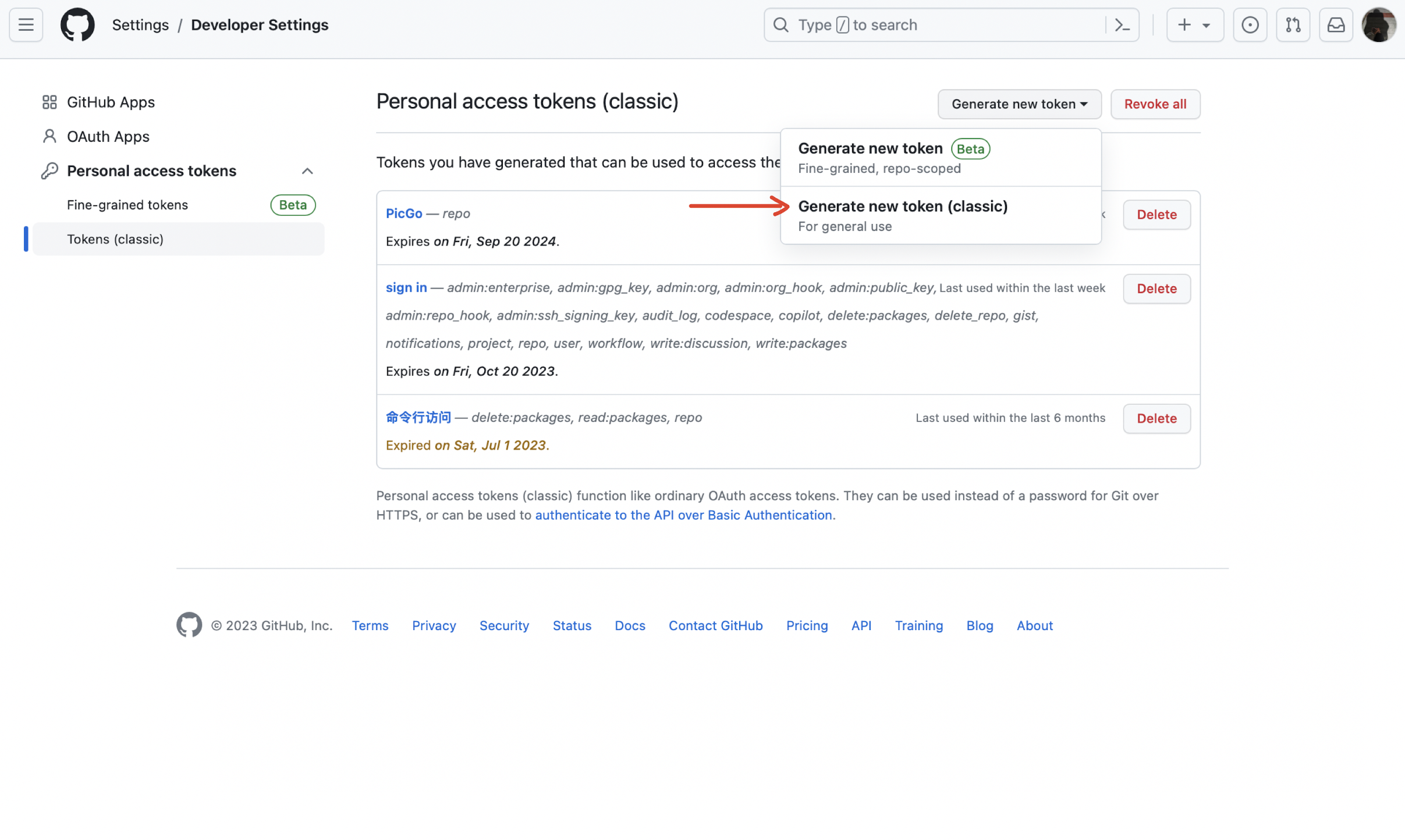 Personal access tokens后,找到Tokens(classic)并点击,在右上角可看到Generate new token。