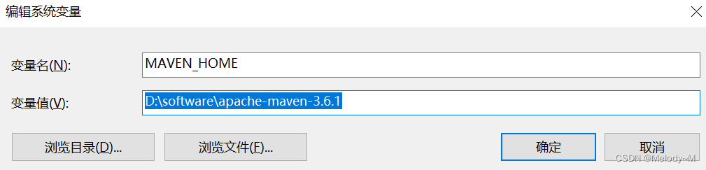 添加环境变量MAVEN_HOME,值为 Maven 的安装路径
