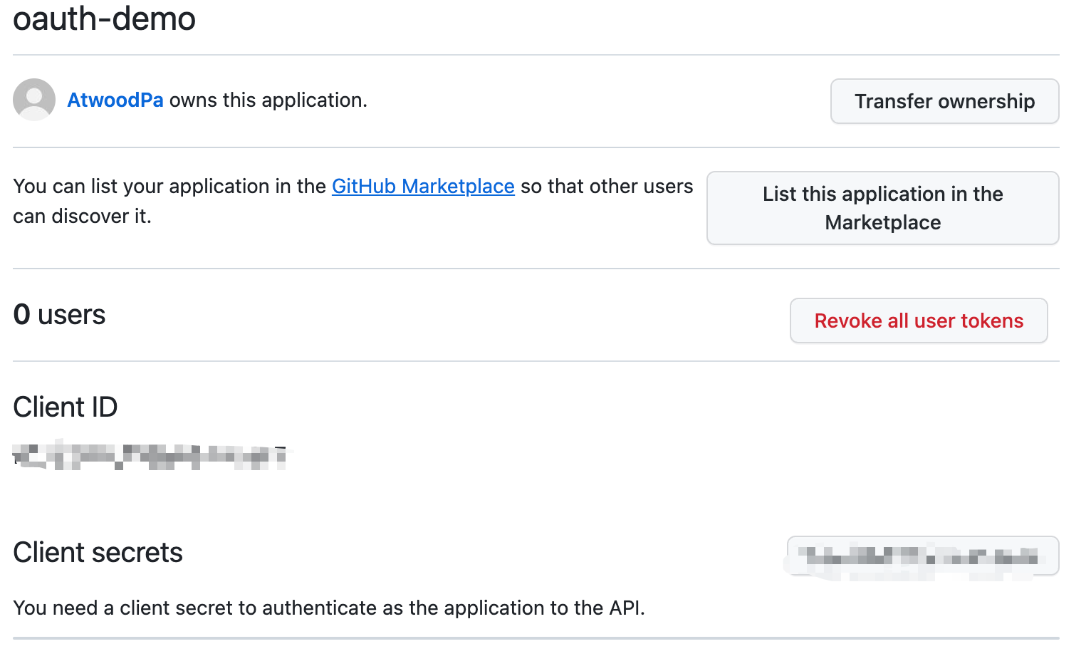 提交成功之后,GitHub会返回Client ID & Client Secrets ,这是应用的身份识别码