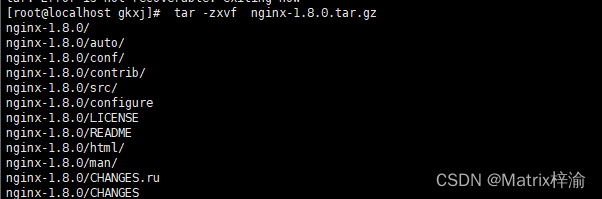 tar -zxvf nginx-1.8.0.tar.gz(即tar -zxvf 安装包名)