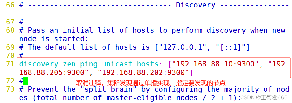 Master/data/client,设置相同的cluster.name并使用Zen D通过单播实现集群中节点的服务发现