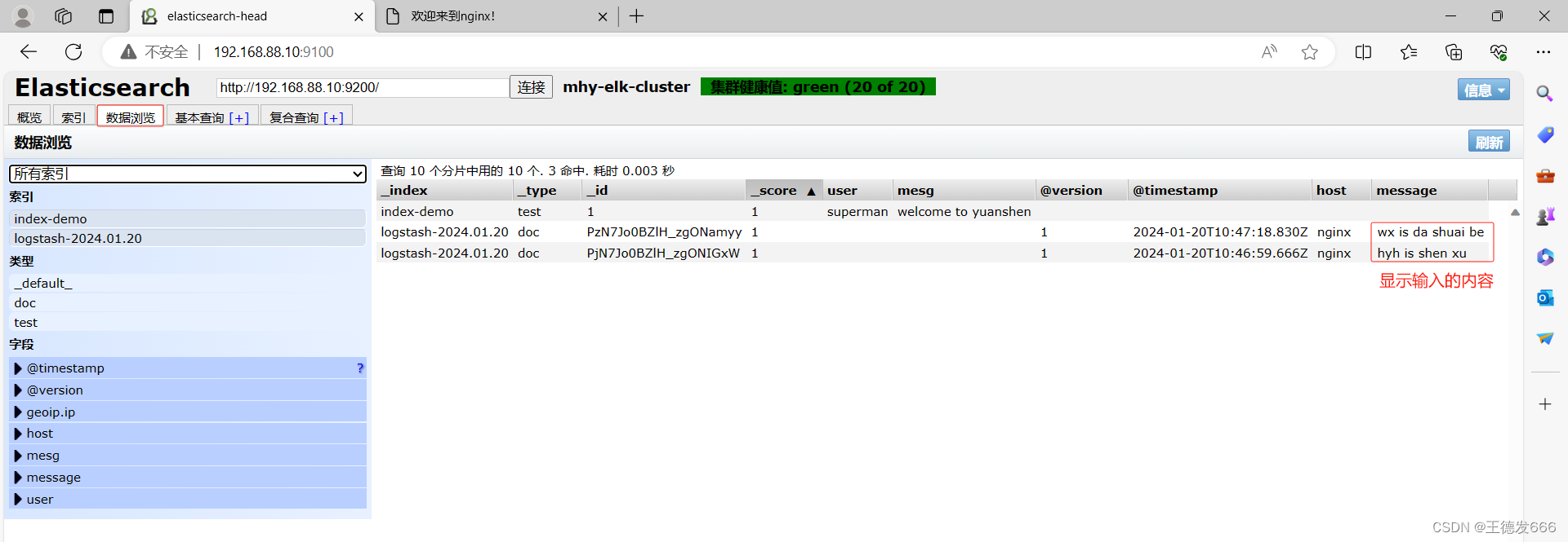 浏览器访问 http://192.168.88.10:9100验证结果