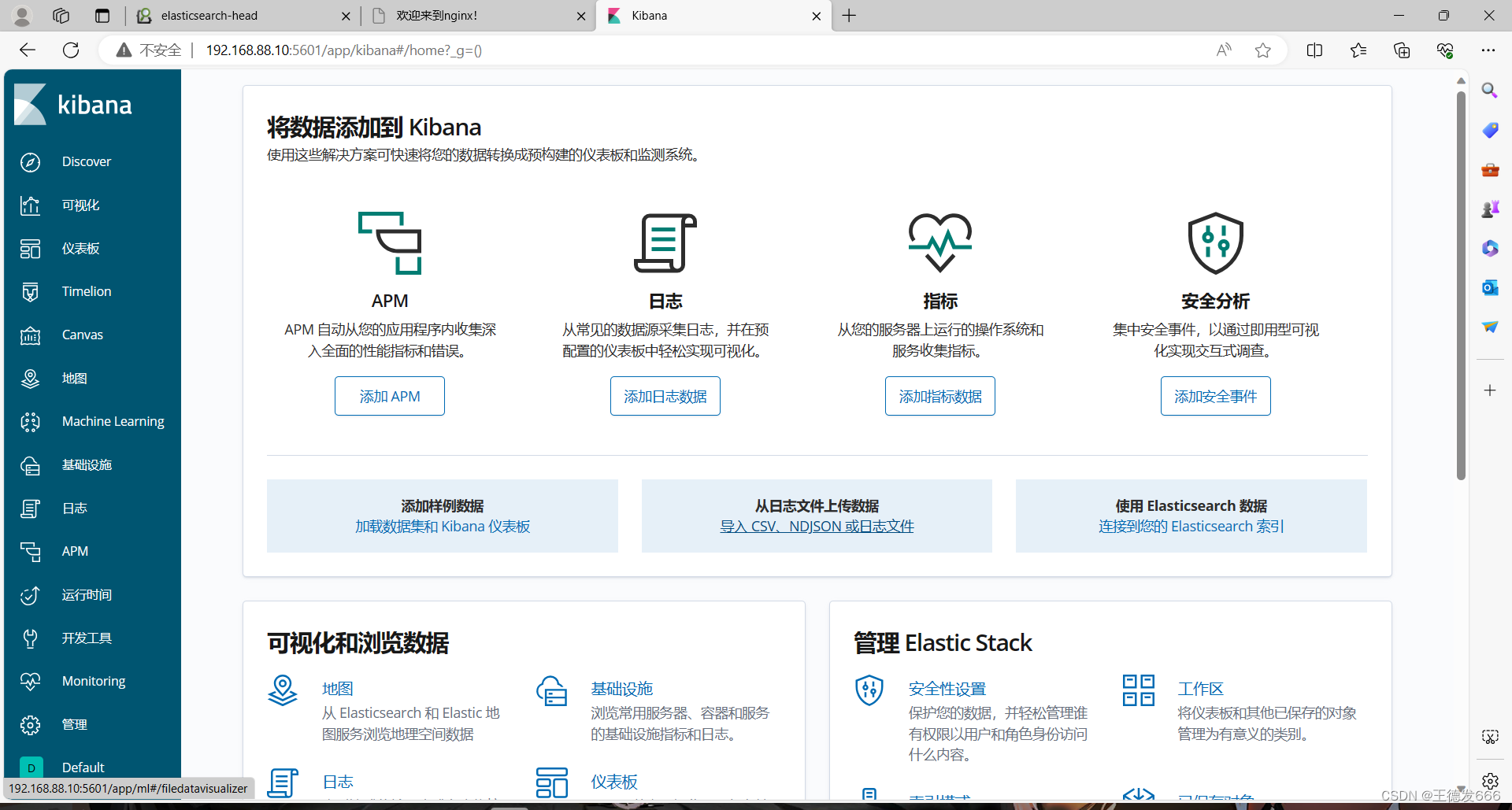浏览器访问 http://192.168.88.10:5601