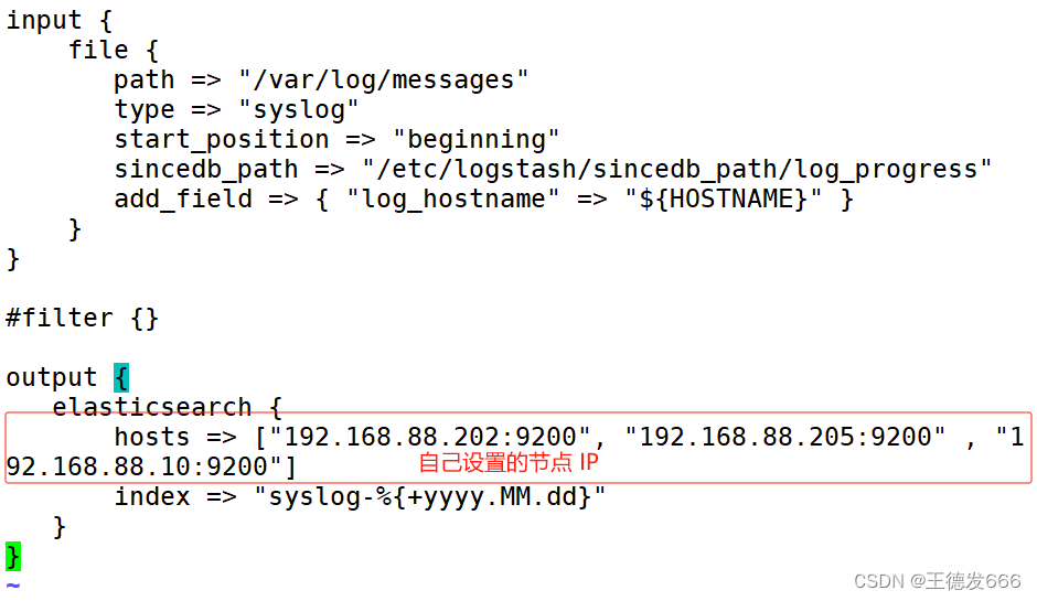 hosts => ["192.168.88.10:9200","192.168.88.205:9200","192.168.88.202:9200"]