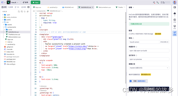 对于一些初、中级程序员,想开发并部署一个中小应用(如开源项目的文档、个人博客、个人网站、在线简历和在线 ChatGPT 聊天工具等)还是有一定门槛的,需要先在电脑上装好对应的开发环境(如 Python、Java、Go、NodeJS等),然后到 GitHub 上创建一个项目,拉到本地,开发完后 push 代码,再到阿里云买云主机,配环境、证书,绑 ssh key,拉代码、编译……纯前端项目相对方便一点,可以本地编译传 CDN,或使用 GitHub Pages 服务等。总体来说,开发部署应用的过程费时费力,效率较低。