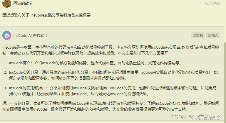 最后希望本篇文章的内容对你有所帮助,InsCode AI 创作助手,一个源于 CSDN 的 AI 创作助手,给你带来不一样的创作体验。欢迎来体验和反馈,欢迎在评论区留言。