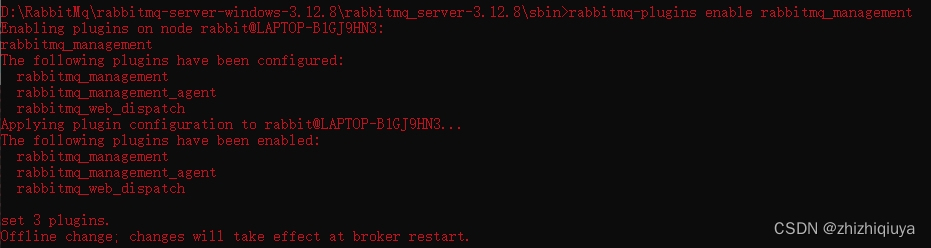 是启用名为 rabbitmq_management 的插件的命仗,它提供了一个 Web 界面,