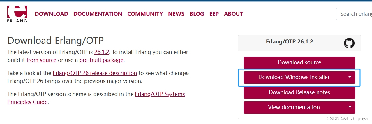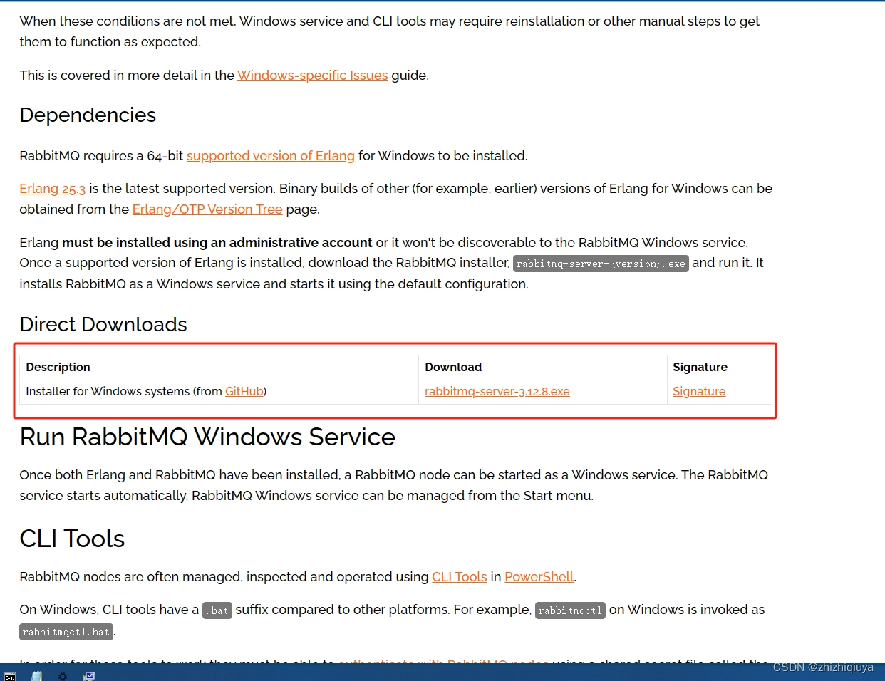 官网下载地址:Installing on Windows — RabbitMQ