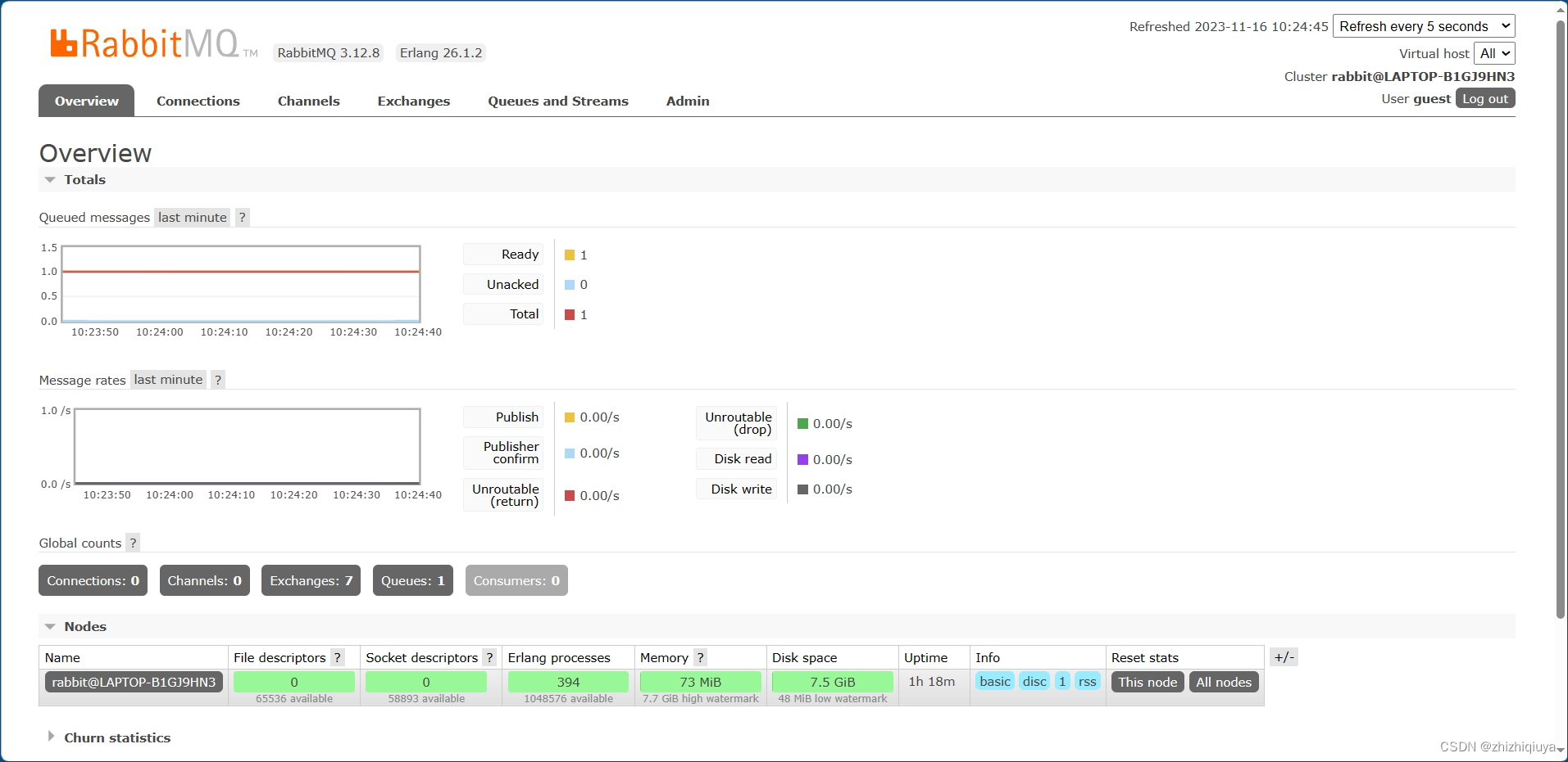 在浏览器输入地址http://localhost:15672/ ,回车进入,