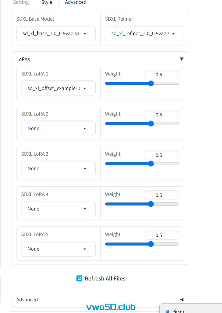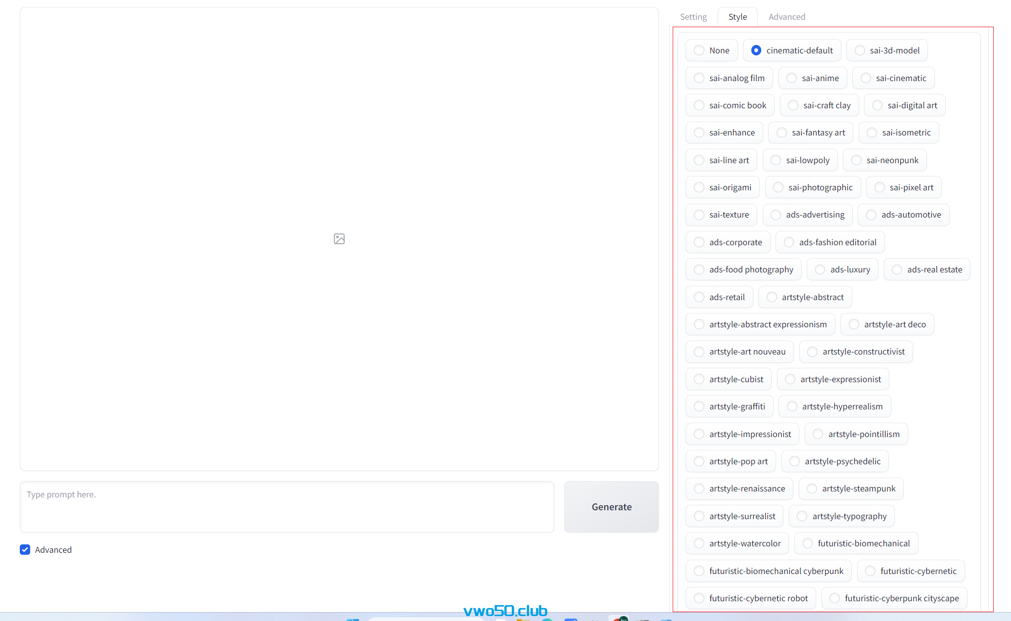 点击Advanced,可以进行高级设置,主要也就是分辨率 风格和模型的一些选择上。我认为fooocus最好的一点是集中让用户做选择题而不是完形填空!!!