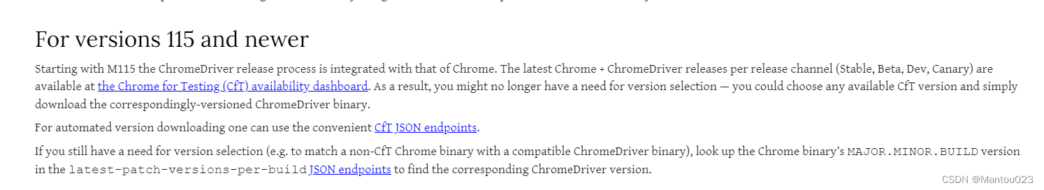 找到第一个链接the Chrome for Testing (CfT) availability dashboard.