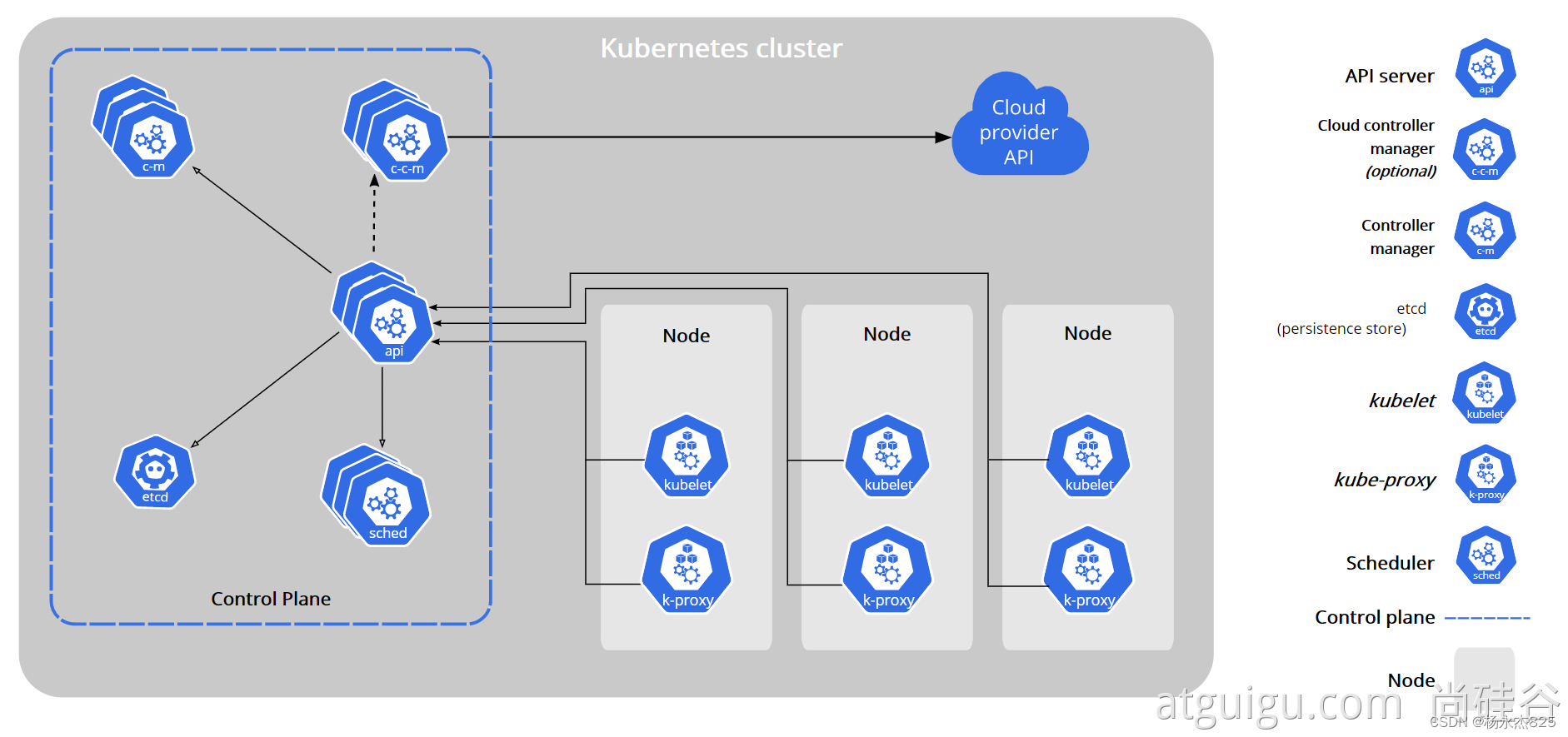 - 节点控制器(Node Controller): 用于在节点终止响应后检查云提供商以确定节点是否已被删除