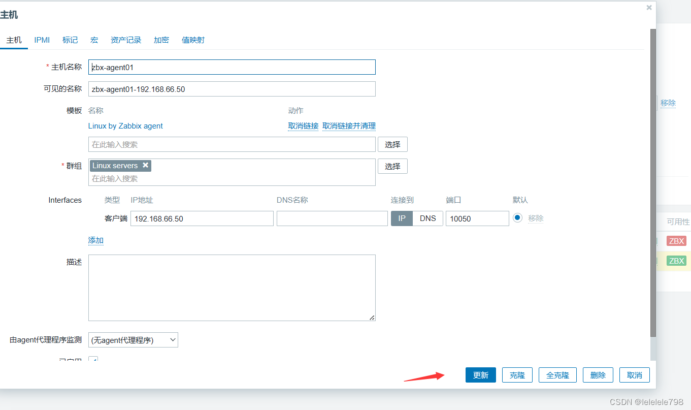 点击左边菜单栏【配置】中的【主机】,点击你要关联的主机