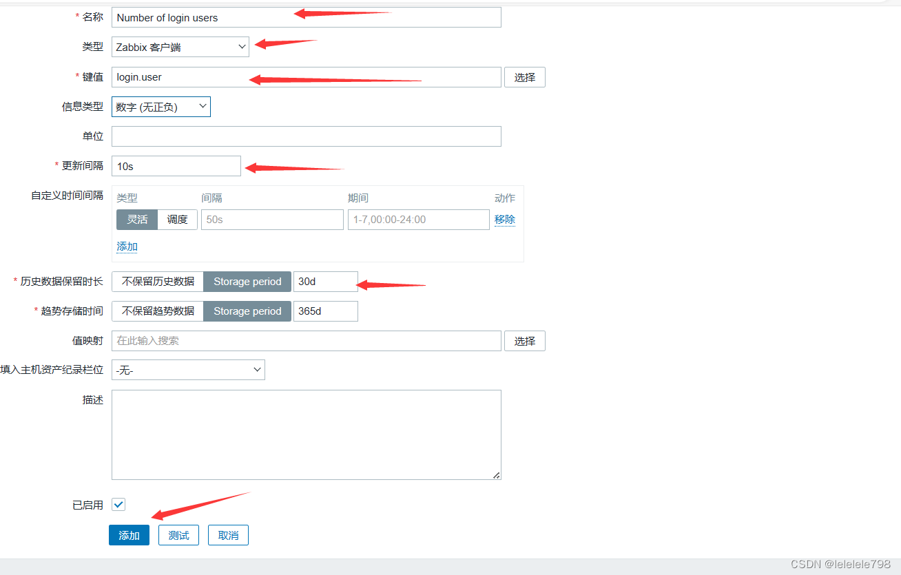 【键值】设置成 login.user #键值必须要与自定义的监控项配置文件中设置的保持一致