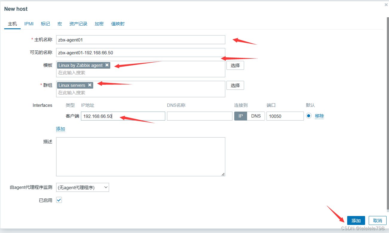 【主机名称】输入 zbx-agent01