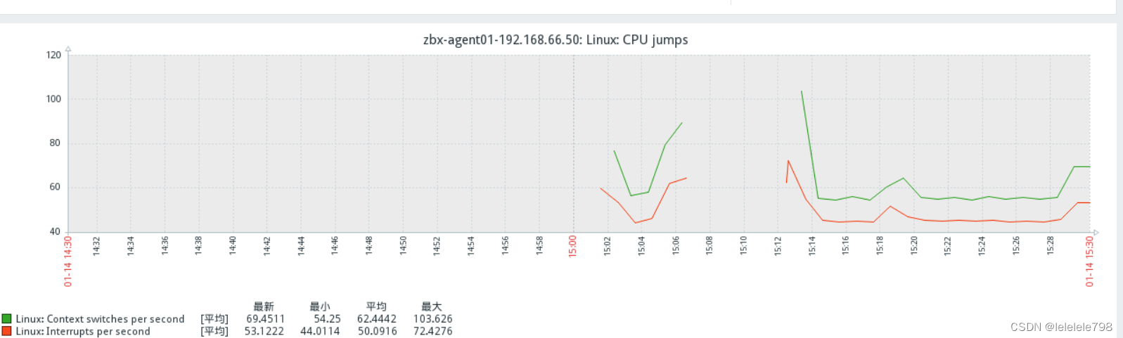 被动模式:zabbix agent 被动接收 zabbix server 请求的监控项列表,zabbix agent 发送监控项需要的数据发送给 zabbix server。