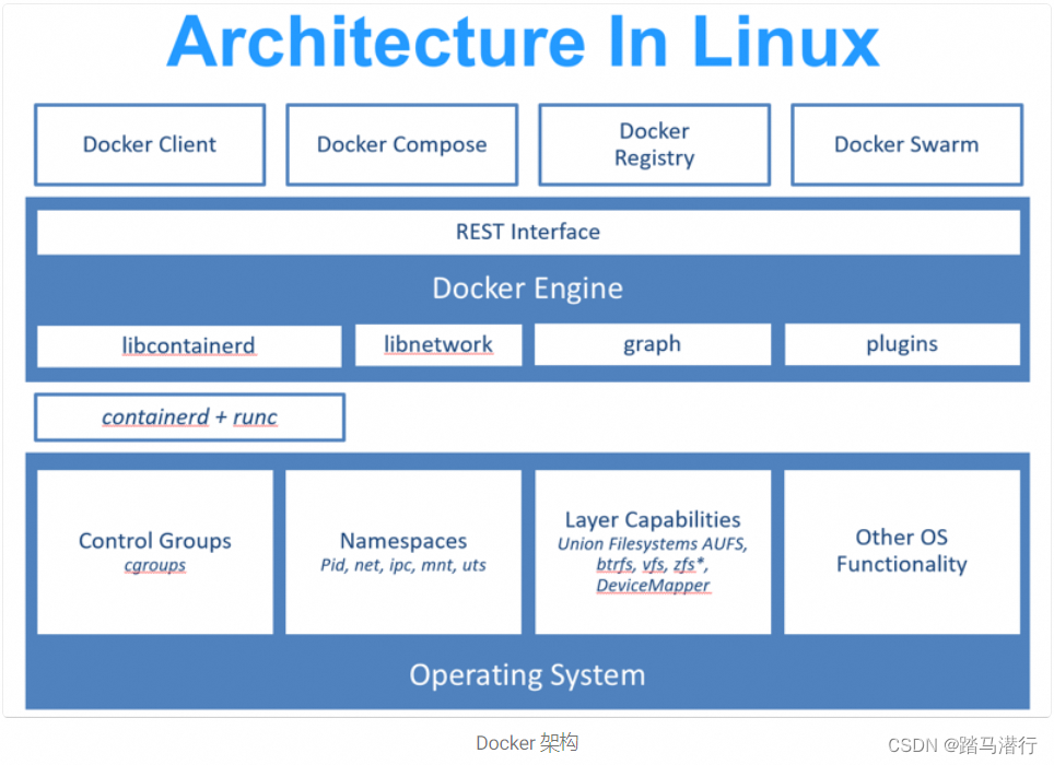 Docker 使用 Google 公司推出的 Go 语言 进行开发实现,基于 Linux 内核的 cgroup,namespace,以及 OverlayFS 类的 Union FS 等技术,对进程进行封装隔离,属于 操作系统层面的虚拟化技术。由于隔离的进程独立于宿主和其它的隔离的进程,因此也称其为容器。最初实现是基于 LXC,从 0.7 版本以后开始去除 LXC,转而使用自行开发的 libcontainer,从 1.11 版本开始,则进一步演进为使用 runC 和 containerd。