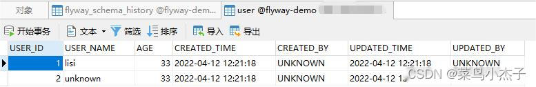 如果我们修改了R__add_unknown_user.sql,再次执行的话,该脚本就会再次得到执行,并且flyway的历史记录表中也会增加本次执行的记录。