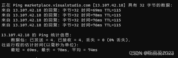 一、win+R → cmd → ping marketplace.visualstudio.com,结果如图: