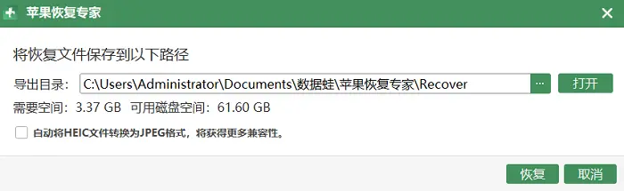 软件版本:数据 蛙苹果恢复专家3.0.86