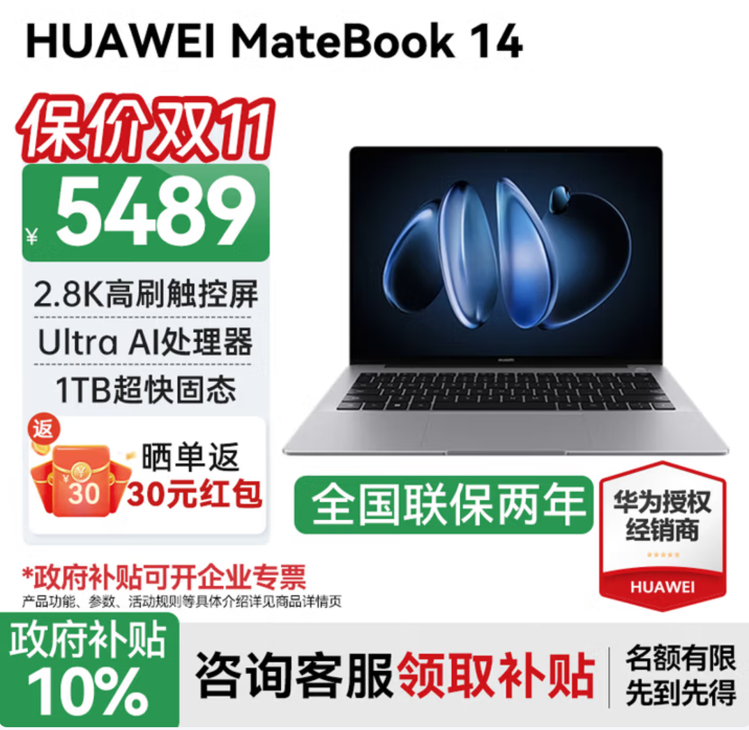 最后给大家推荐一款性价比很高的华为笔记本电脑:华为笔记本电脑MateBook 14
