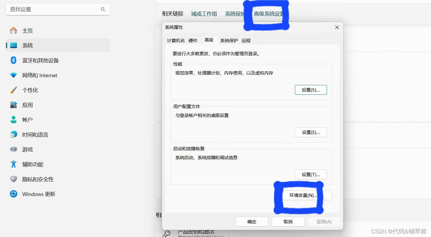 打开此电脑 -> 右键属性 -> 高级系统设置 -> 环境变量
