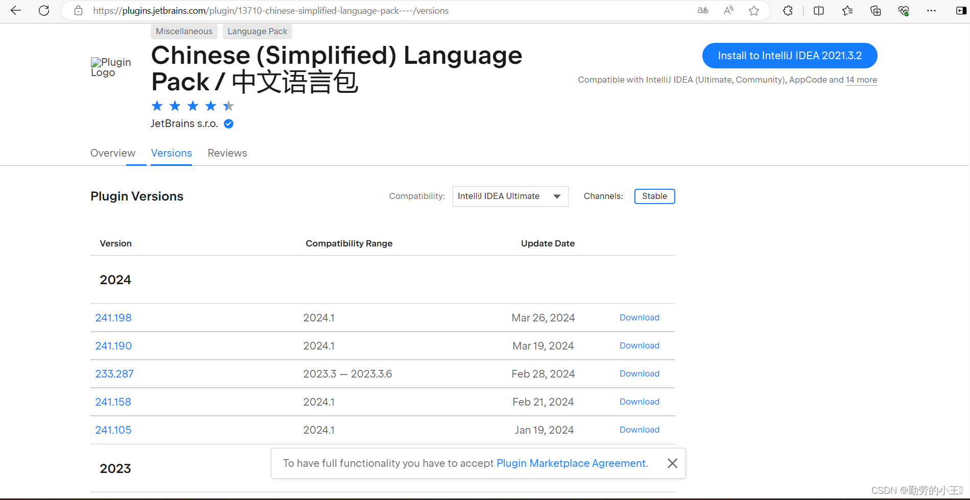 在插件市场中搜索我们需要的插件,然后下载跟自己idea版本相对应的插件,在这要注意版本一定要对应好,不然是无法导入idea的 。