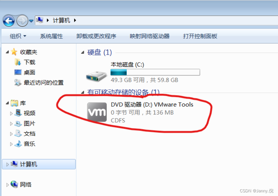 打开win7虚拟机-计算机-资源管理器,双击安装;
