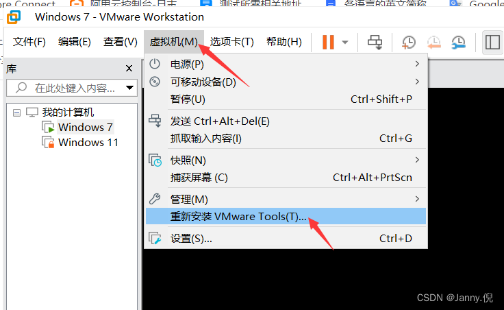 1.点击虚拟机,选择安装VMware tools 。由于已经安装,所以不再演示。 点击后直接下载。下载完成,直接点击安装即可。(安装常见问题见文档后面)
