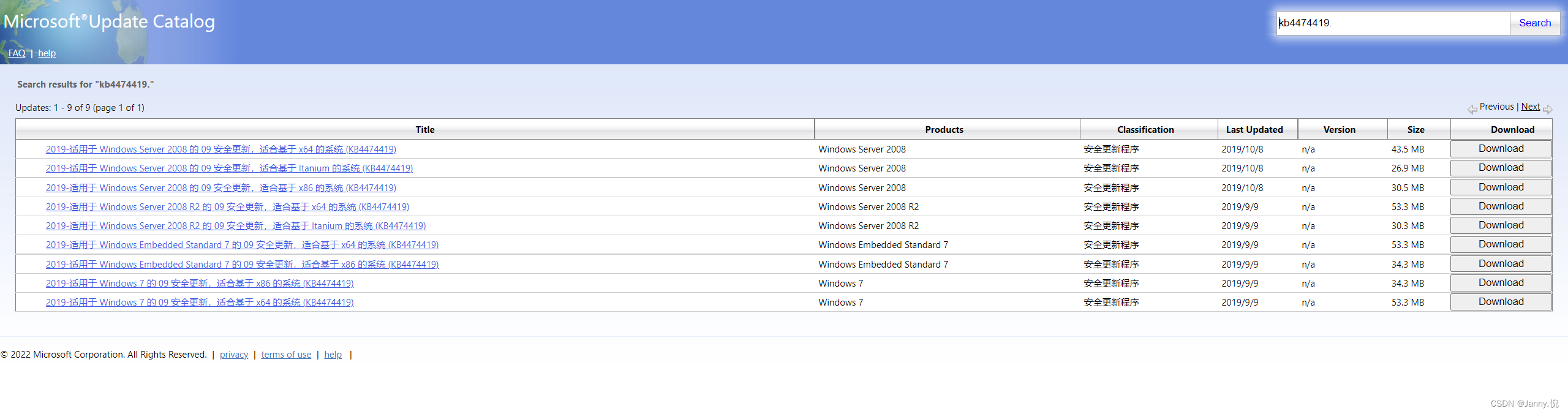 链接:https://www.catalog.update.microsoft.com/Search.aspx?q=kb4474419.