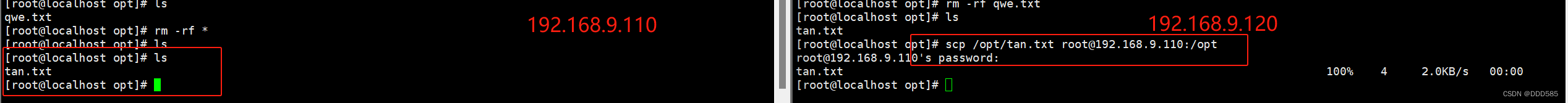 于192.168.9.120中操作:复制192.168.9.120位置下/opt/tan.txt文件到192.168.9.110位置下/opt/目录