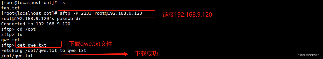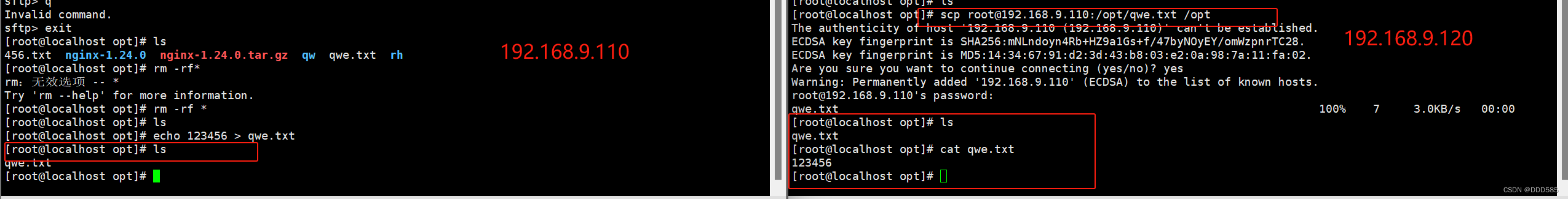 于192.168.9.120中操作:复制192.168.9.110位置下/opt/qwe.txt文件到192.168.9.120位置下/opt目录