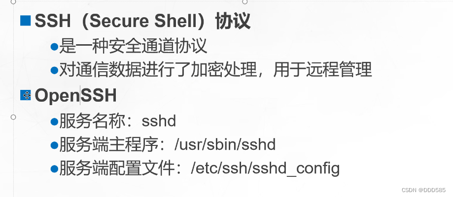 SSH(Secure Shell)是一种安全通道协议,主要用来实现字符界面的远程登录、远程复制等功能。