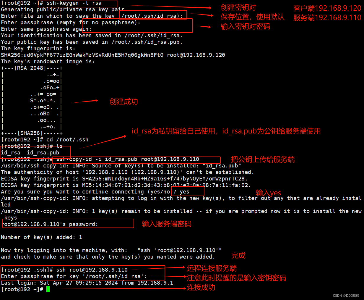 要求提供相匹配的密钥信息才能通过验证。通常先在客户机中创建一对密钥文件(公钥、私钥),然后将公钥文件放到服务器中的指定位置。远程登录时,系统将使用公钥、私钥进行加密/解密关联验证,大大增强了远程管理的安全性,且可用免交互登录。