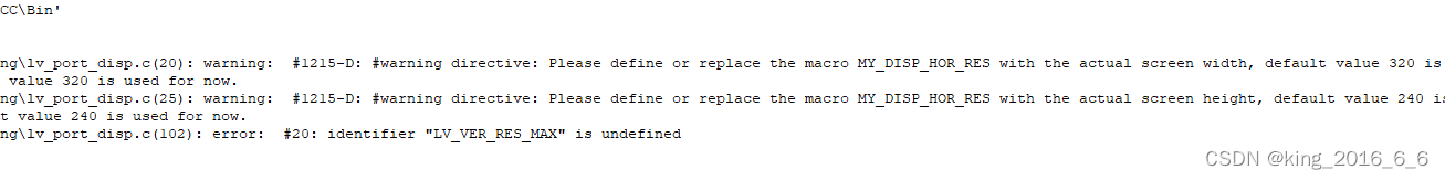 编译报错和警告,没有定义水平MY_DISP_HOR_RES、垂直分辨率MY_DISP_VER_RES和 最大水平分辨率MY_DISP_VER_RES