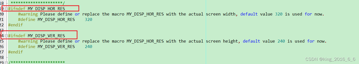 通过这里我们可以看到如果我们没有自己定义 水平MY_DISP_HOR_RES、垂直分辨率MY_DISP_VER_RES,编译会警告,并且会提供默认的分辨率