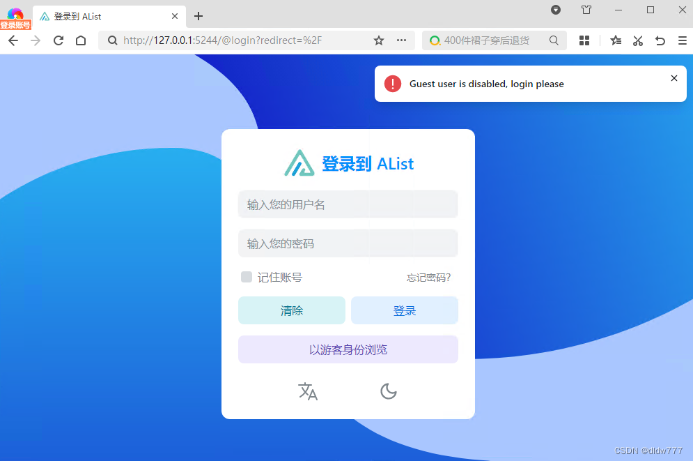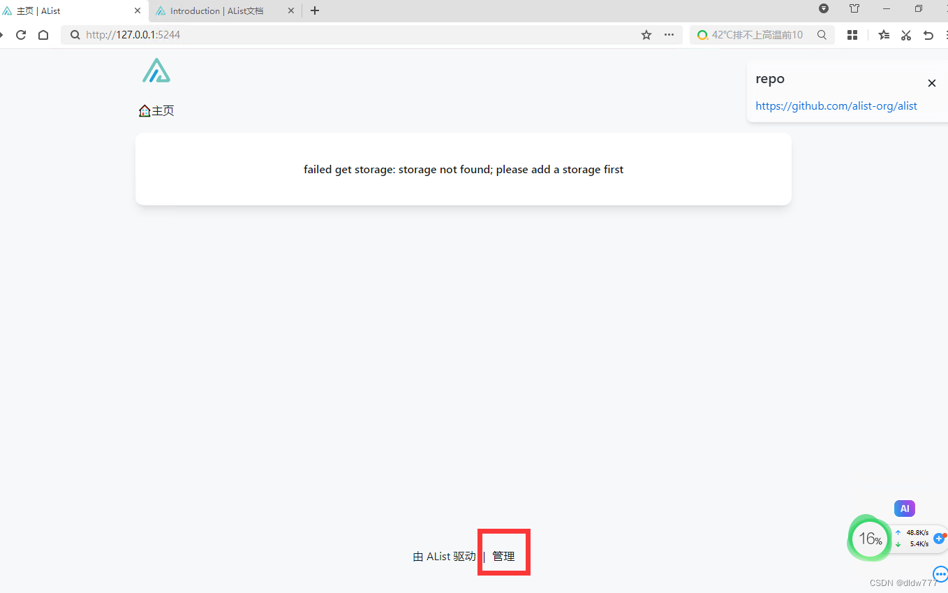这时候你在内网访问alist电脑ip加:5244的端口号,就可以访问了。