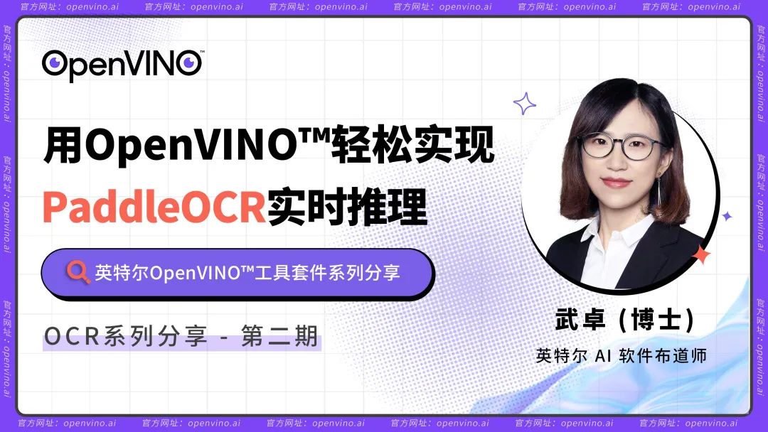本期课程主要是以百度开源的PaddlePaddle框架的PaddleOCR技术为例,具体介绍如何利用英特尔开源的OpenVINO工具套件,仅使用我们手边的CPU,轻松实现对于PaddleOCR的实时推理。