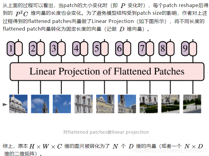 作者采用了了一个比较简单的方式。如下图所示。首先将图像分割成一个个patch,然后将每个patch reshape成一个向量,得到所谓的flattened patch。