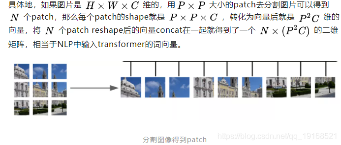 文章不同于以往工作的地方,就是尽可能地将NLP领域的transformer不作修改地搬到CV领域来。但是NLP处理的语言数据是序列化的,而CV中处理的图像数据是三维的(长、宽和channels)。