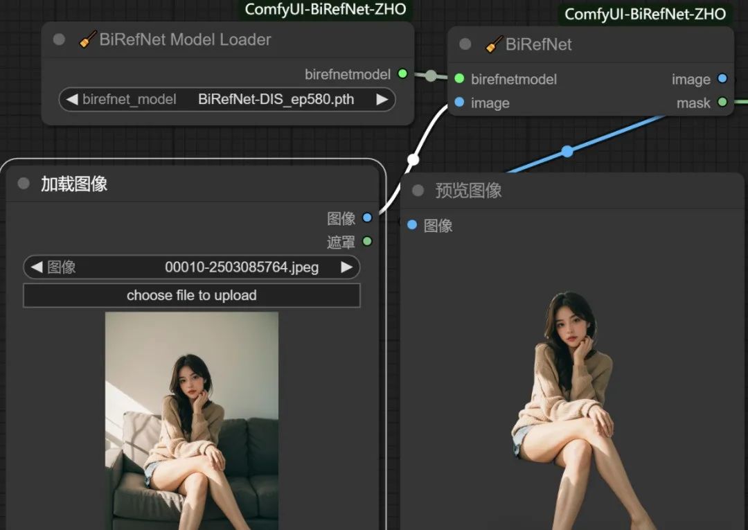 插件名叫做:ComfyUI-BiRefNet-ZHO,直接在 ComfyUI 管理器中搜索安装即可。