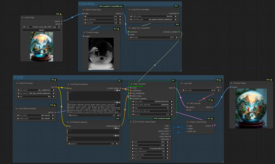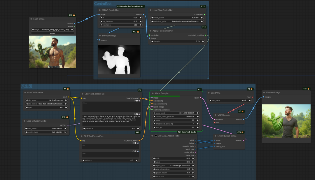 [ComfyUI]Flux:新添深度和线条3款CN成员,工业级可控性即将到来,继LORA后的生态最后一公里
