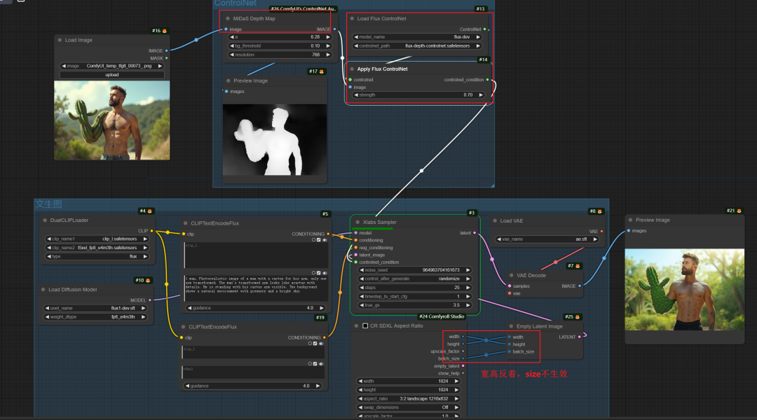 • 本次工作流使中采样器似乎存在bug,设置的宽高参数刚好相反,同时批量图片size不生效。