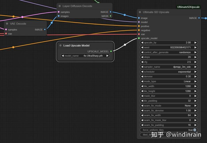 这里放大的图像使用Layer Diffusion Decode的Image输出,其他输入与KSample输入一致。Upscale Model我习惯使用4x-UltraSharp.pth,这个影响不太大。