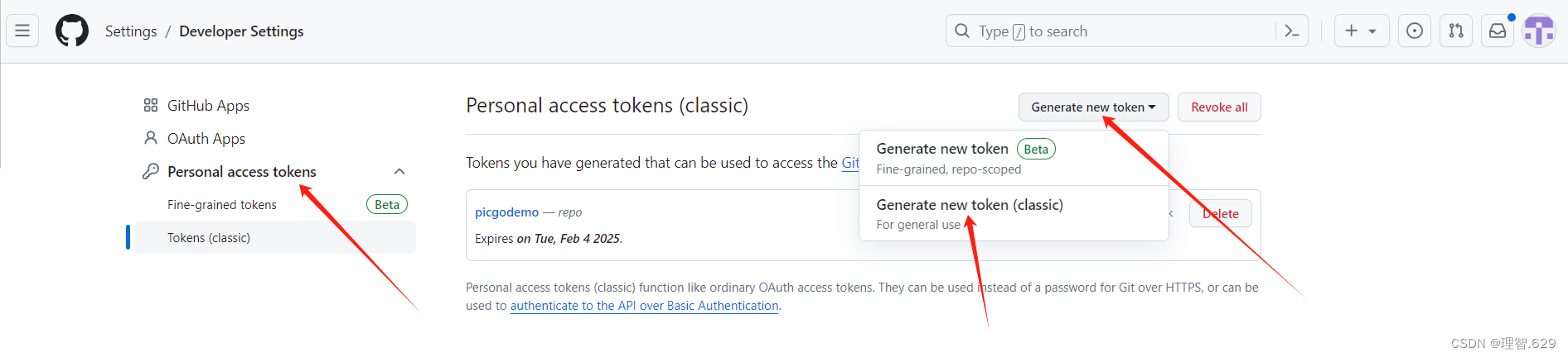 3.在github中创建一个私人token,用于picgo的绑定验证