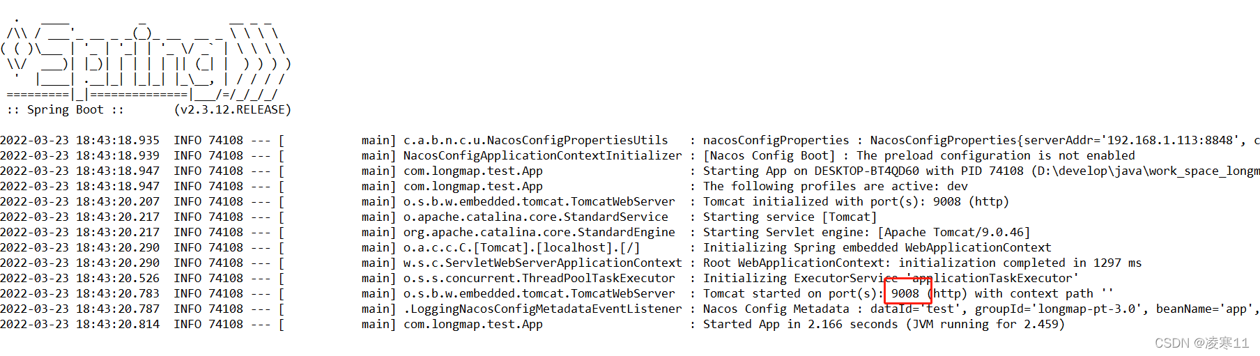 启动服务,看到控制台输出的端口号为Nacos服务上配置的端口,说明成功了
