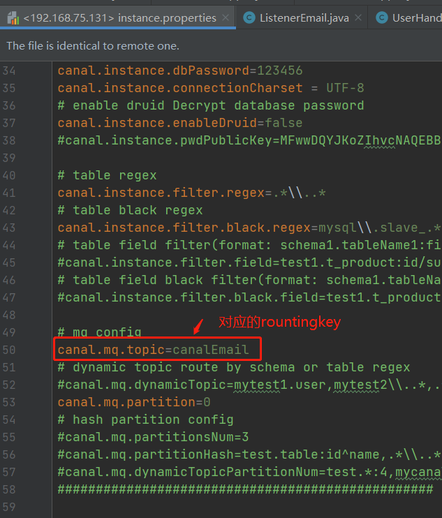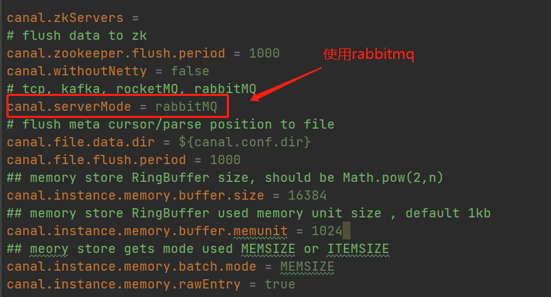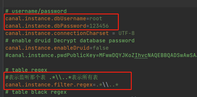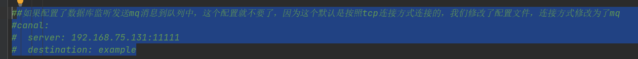 #如果配置了数据库监听发送mq消息到队列中,这个配置就不要了,因为这个默认是按照tcp连接方式连接的,我们修改了配置文件,连接方式修改为了mq