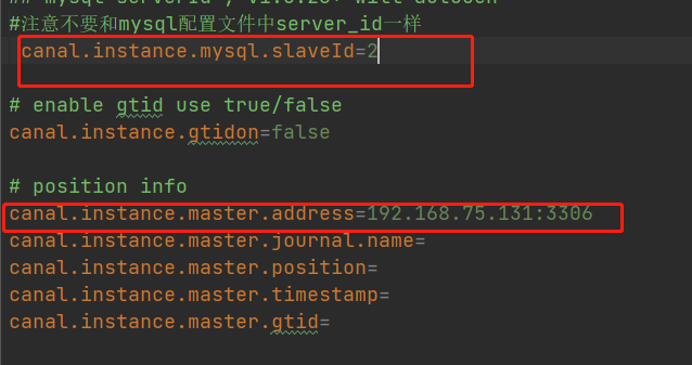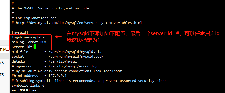 server_id=1 # 配置MySQL replaction需要定义,不和Canal的slaveId重复即可